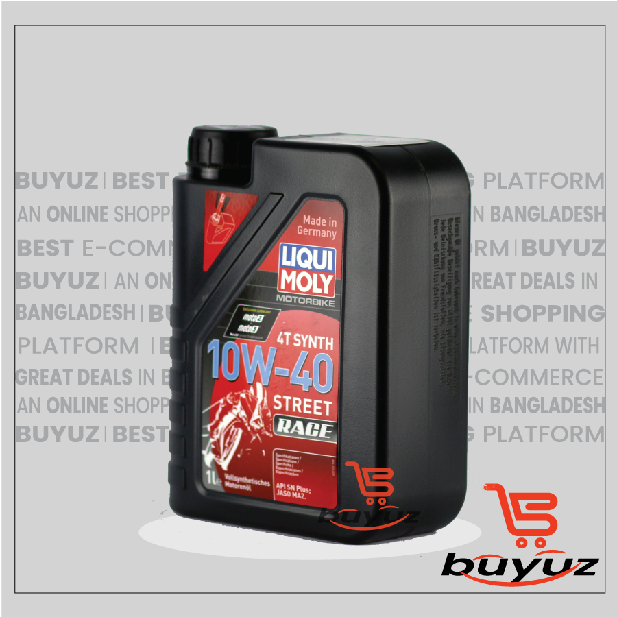 Liqui Moly Motorbike 4T Synth 10W-40 Street Race is a fully synthetic high-performance engine oil available in Bangladesh (1L bottles). It meets API SN/SN Plus and JASO MA2 specifications, designed for 4-stroke engines (sport/racing) with wet or dry clutches. It ensures maximum protection, reduced wear, and, importantly for Bangladesh riders, improved gear shifting.